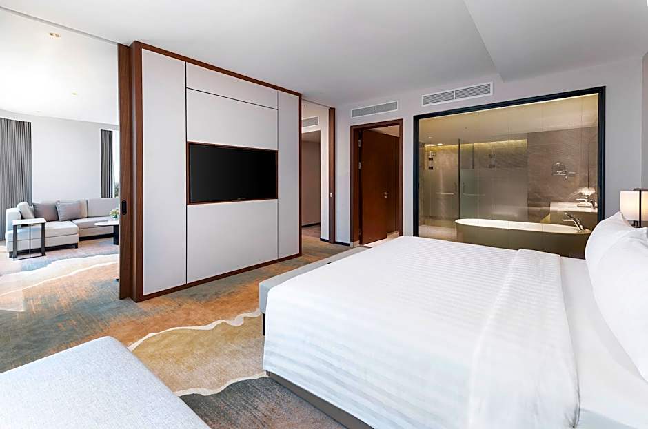 This spacious suite consists of 1 living room, 1 separate bedroom and 1 bathroom with a bath and free toiletries. The air-conditioned suite provides a flat-screen TV, a mini-bar, executive lounge access, a wardrobe as well as city views. The unit offers 2 beds.