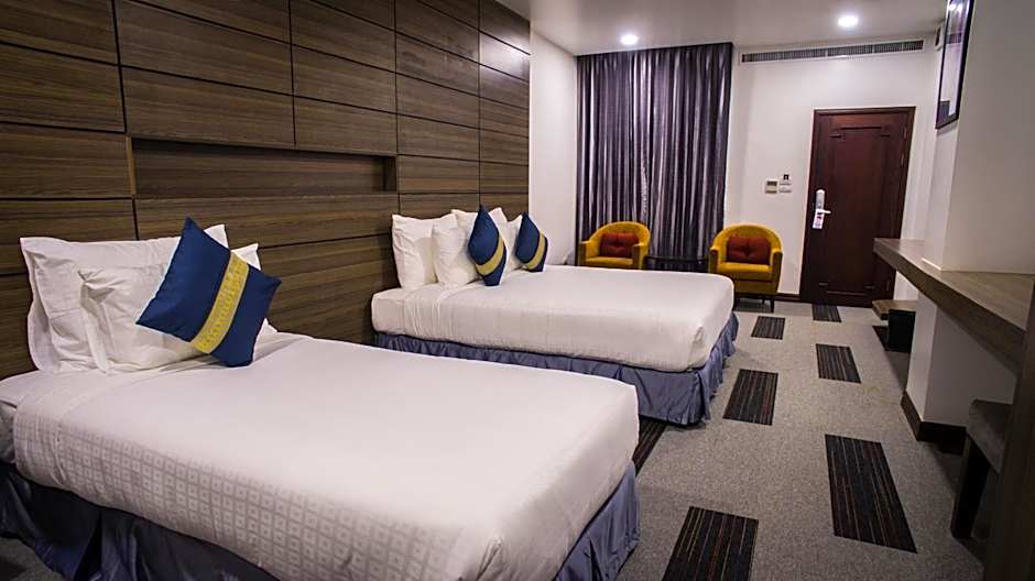 A varied lineup of rooms caters to different travelers, from Deluxe King and Deluxe Twin to Family suites and Junior accommodations. The Deluxe King room accommodates up to 4 adults and 3 children with one king bed, while the Family room (398 sqft) accommodates 8 adults and 4 children and includes a twin bed plus a double bed. Other options include Economy Triple, Deluxe 2 Twin City View, Quadruple Room, and Standard and Superior layouts to match the itinerary.