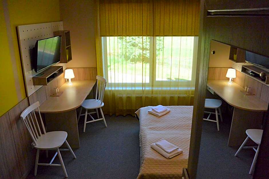 A spacious room with a separating parting. There is a TV with satellite channels and private bathroom with shower. There is a possibility to place 1 extra bed at an extra charge.