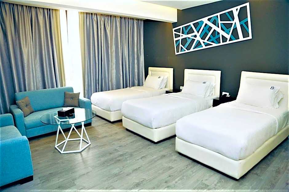 The Beverly Hotel Beirut offers a variety of room types including family suites, double rooms, suites, triple rooms, and twin rooms. Smoking is not allowed in any of the rooms. The rooms accommodate different numbers of adults and children, ranging from 2 adults and 1 child to 5 adults and 3 children. The bed sizes vary, with options such as twin beds, queen size beds, and king size beds. The room sizes range from 215 sqft to 484 sqft.