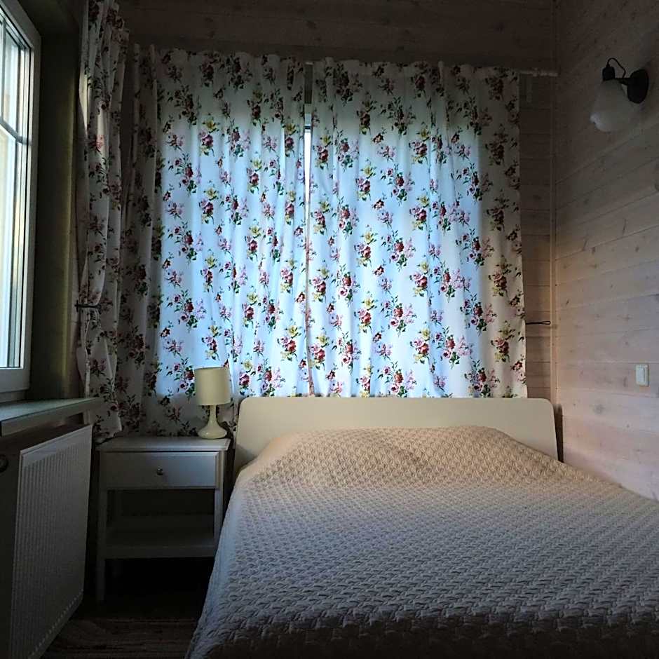 It is a lovely wooden house with a spacious kitchen/living area and a separate bedroom with a comfy bed. Terrace is a perfect addition for a morning coffee! Communicative and helpful host, and even offered a scooter for our kid!