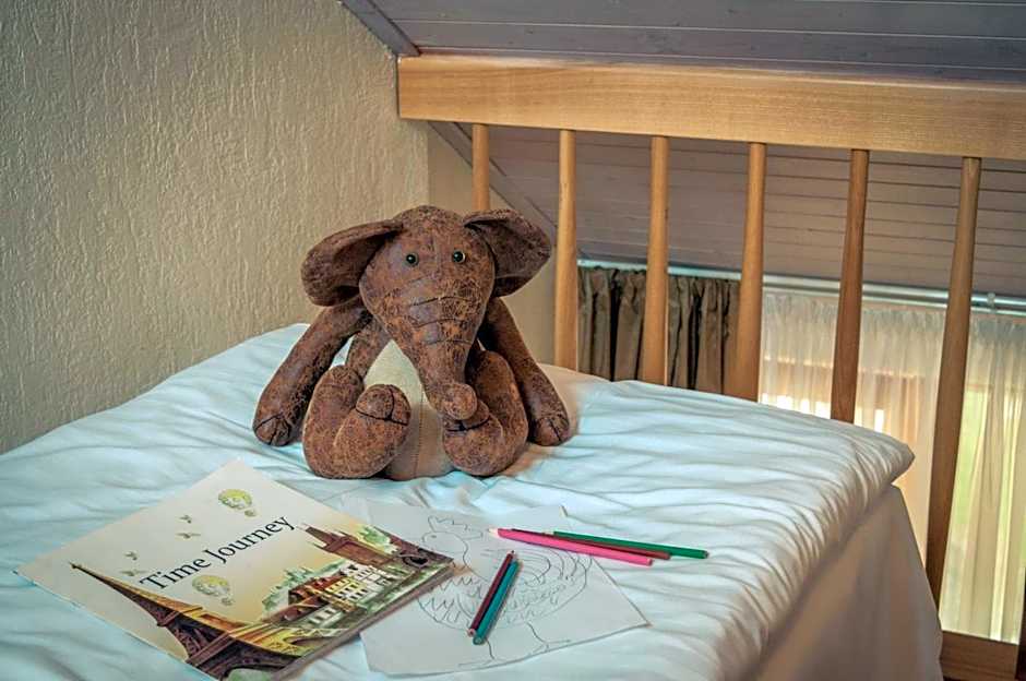 This family room includes a TV with cable channels, a private bathroom as well as a balcony with garden views. The unit offers 3 beds.