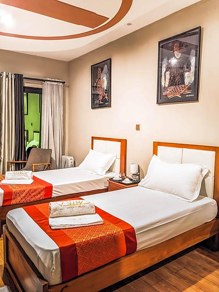 Valiha Hotel Antananarivo offers a variety of rooms including Deluxe Double, Family, Twin, and Triple Rooms. All rooms are non-smoking and can accommodate between 2 to 4 adults, with bed sizes ranging from Double to Twin. Room sizes range from 258 sqft to 344 sqft, providing comfortable space for guests.