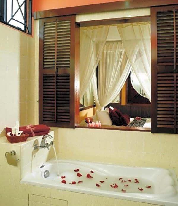 This 4-bedroom villa has a private balcony offering views of either the courtyard, resort, golf course or pool. It also has a separate dining and living area. The private bathroom in the master bedroom has a bathtub, while the common bathroom has a shower.