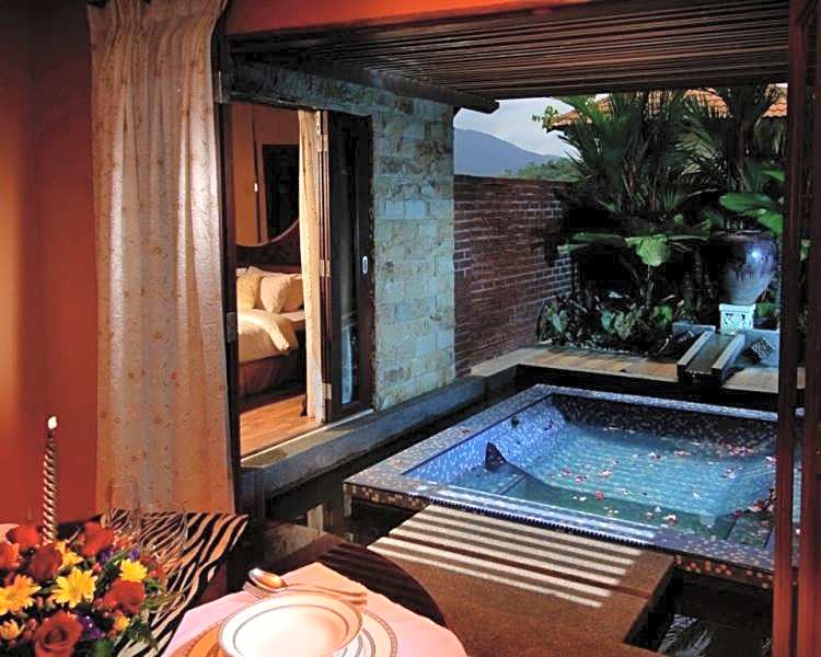 Boasting a private swimming pool and hot tub, this spacious 2-bedroom villa comes with a living room, dining area and a kitchenette. The private bathroom in the master bedroom comes with a bathtub.
