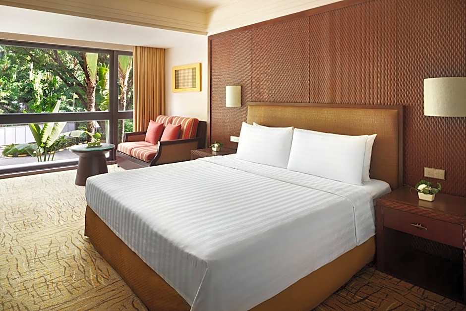The room has floor-to-ceiling windows which offers views of resort's rain trees and parking courtyard view. The luxurious room is equipped with upgraded toiletries and a large bathroom fitted with a bathtub and separate shower facilities. Benefits include: Rasa Wing privilege benefits such as Rasa Wing Pool access. Extra beds for this room type are subject to additional charges.