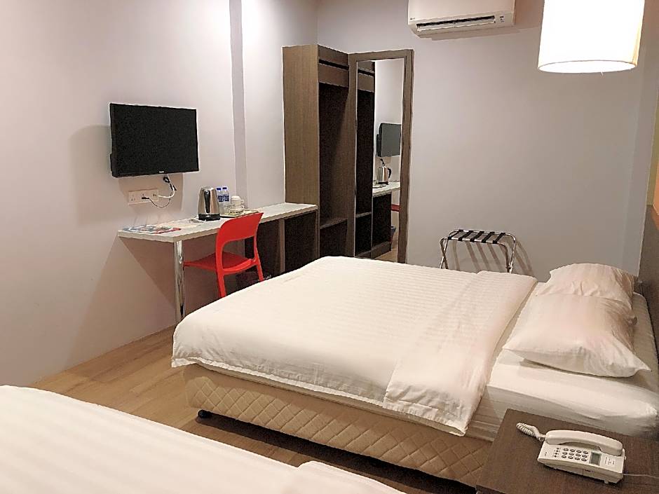 GPI HOTEL Bentong offers Twin Rooms and Queen Rooms. The Twin Rooms are 140 sqft in size, accommodate 2 adults and 1 child, have 2 Twin beds, and smoking is not allowed. The Queen Rooms are also 140 sqft in size, accommodate 2 adults and no children, have 1 Double bed, and smoking is not allowed. Additionally, the hotel offers Standard Queen Rooms and Standard Twin Rooms, both of which are 129 sqft in size, accommodate 2 adults and no children, have either 1 Double bed or 2 Twin beds respectively, and smoking is not allowed in these rooms as well.