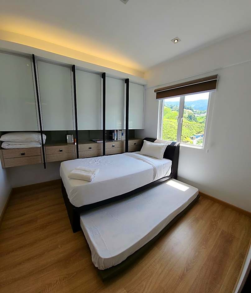 This three-bedroom apartment features a private balcony that opens up to views of the tea plantation.
