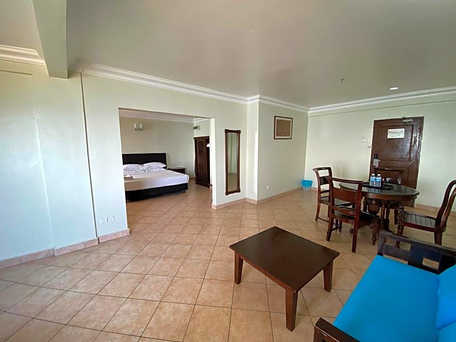 This spacious air-conditioned suite opens up to views of the sea. The seating area is fitted with with a satellite TV, sofa and a desk. The private bathroom includes shower facilities.