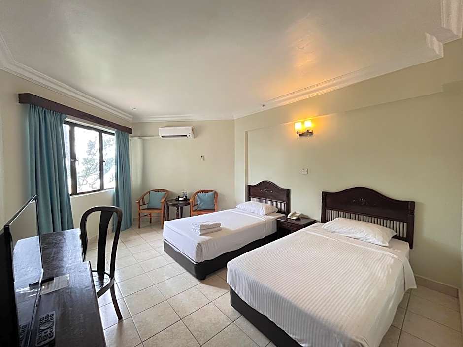 This air-conditioned deluxe twin room opens up to views of the garden. It is fitted with with a satellite TV, a mini fridge and tea/coffee making facilities. The private bathroom includes shower facilities.