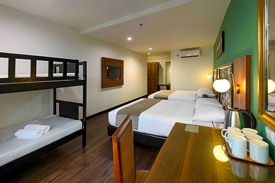 These rooms feature 2 queen size beds,1 double deck bed, air conditioning, flat-screen TV with satellite channels and safety deposit box. The private bathroom has hot rain shower facilities and a hairdryer.