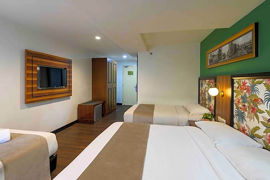 These large rooms feature 2 queen size beds,1 single bed, air conditioning, flat-screen TV with satellite channels and safety deposit box. The private bathroom has hot rain shower facilities and a hairdryer.