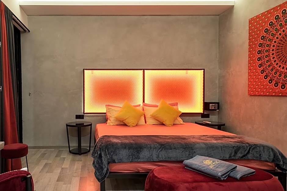 The Attic Hotel offers a range of rooms including Deluxe Double Rooms with Balconies, Triple Rooms with Balconies, Deluxe King Rooms, Triple Rooms, and Double or Twin Rooms. Smoking is not allowed in any of the rooms. The room sizes range from 237 sqft to 301 sqft. The accommodations vary, with options for 2 or 3 adults. Bed sizes include King size beds, Double beds, Twin beds, and Sofa beds.