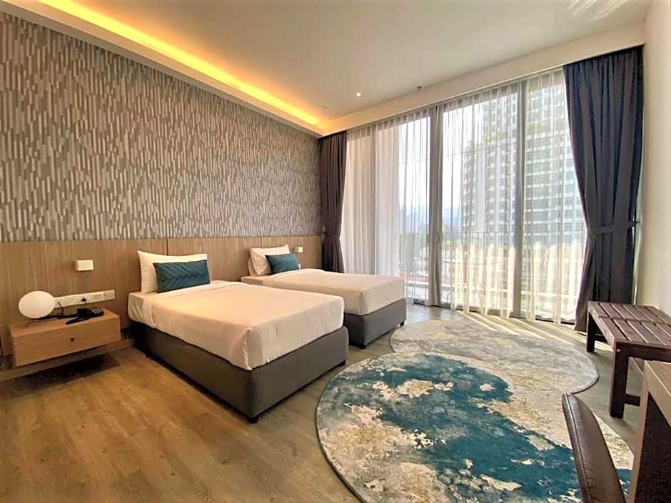 This air-conditioned twin room has a desk, a balcony, city views and a private bathroom. The unit has 2 beds.