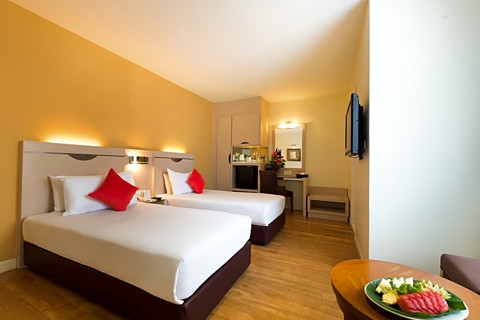 Standard room was very small for our satisfaction Upgraded to family room so impressed Location central & night food markets all around Free Cat bus close with bus station Breakfast buffet staff awesome with international & local selections