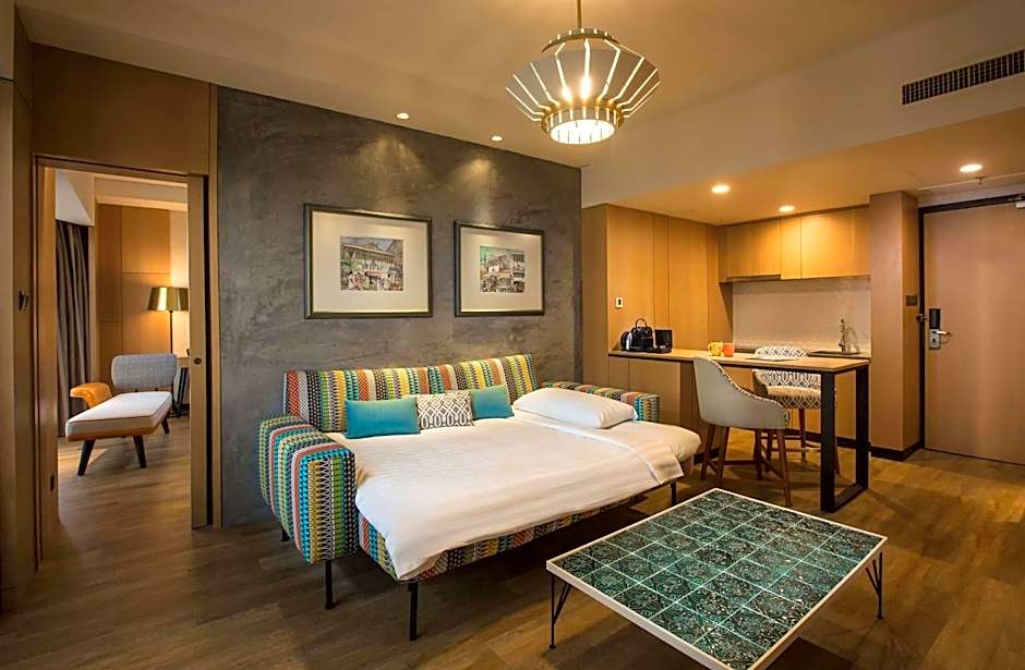 This contemporary-style air-conditioned one-bedroom apartment features panoramic views of historic George Town. The seating area is fitted with a flat-screen satellite TV, a sofa and a working desk. The private bathroom includes shower facilities, a hairdryer and free toiletries. Guests enjoy access to the Club Lounge. Our Club Lounge on Level 16 is open daily from 11am to 9pm. Guests can enjoy all-day refreshments, evening drinks and snacks at the Club Lounge as well as to check-in and check-out during the operation hours. Breakfast will be served at Café Jen on Lobby Level.