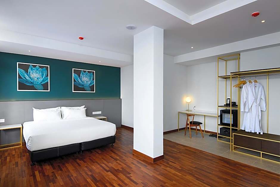 Deluxe rooms are luxuriously comfortable with generous space and offer option views of our lush tropical garden swimming pool and birds-eye-view of the George Town UNESCO World Heritage Site, Historical Clan Jetties, and Penang Straits. A wheelchair-accessible room is also available within this category.