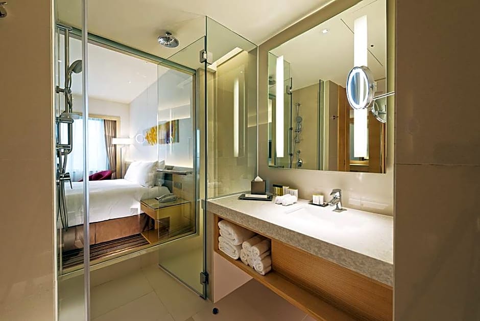 Located on a higher floor, this air-conditioned room is fitted with a king bed. It features a 40-inch flat-screen satellite TV and an ergonomic chair. The stylish bathroom comes with a rain-shower and Aroma Active Essentials toiletries.