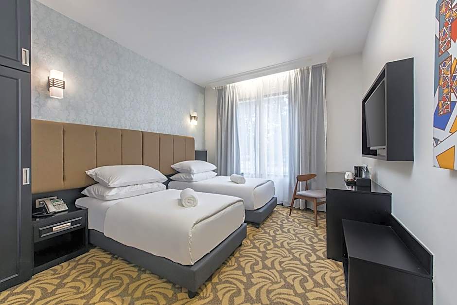Offering free toiletries, this twin room includes a private bathroom with a shower, a bidet and a hairdryer. The air-conditioned twin room offers a flat-screen TV, soundproof walls, a mini-bar, a safe deposit box as well as city views. The unit offers 2 beds.