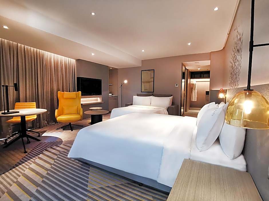 On-site EIGHT Dining offers a diverse lineup—from American and Chinese to Korean, pizza, local and international—wrapped in a modern, family-friendly setting. When it’s time to unwind, the rooftop outdoor pool is an all-season, adults-only oasis, and post-swim relaxation is easy with a free sauna and steam room nearby.