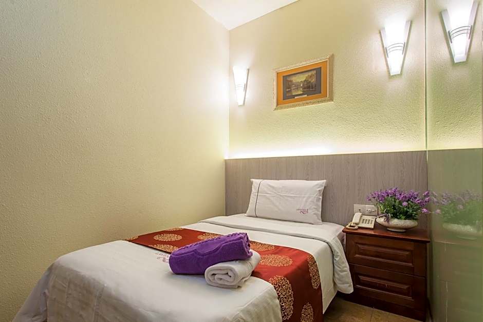 Very clean hotel and you will feel the relaxing scent. Its like a spa atmosphere which is very welcoming and relaxing. Even though the room is small, it fits me well since I'm alone. I like the light fixtures that they installed in the room which gives an elegant touch to it. I also appreciate for granting my request for a table and chair. Staffs are very friendly and accommodating. The toilet is very clean and well maintained.