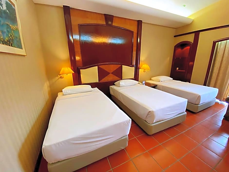 Deluxe Triple Room Elegantly-furnished air-conditioned room that can accommodate 3 people, housing 3 single beds and equipped with a safe deposit box, satellite TV, ironing facilities, electric kettle and a mini fridge. The private bathroom comes with shower facility, hairdryer and bath amenities.