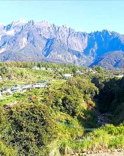 On-site parking is free, and the location offers scenic mountain and landmark views in Malaysia’s Kampung Kundassang.