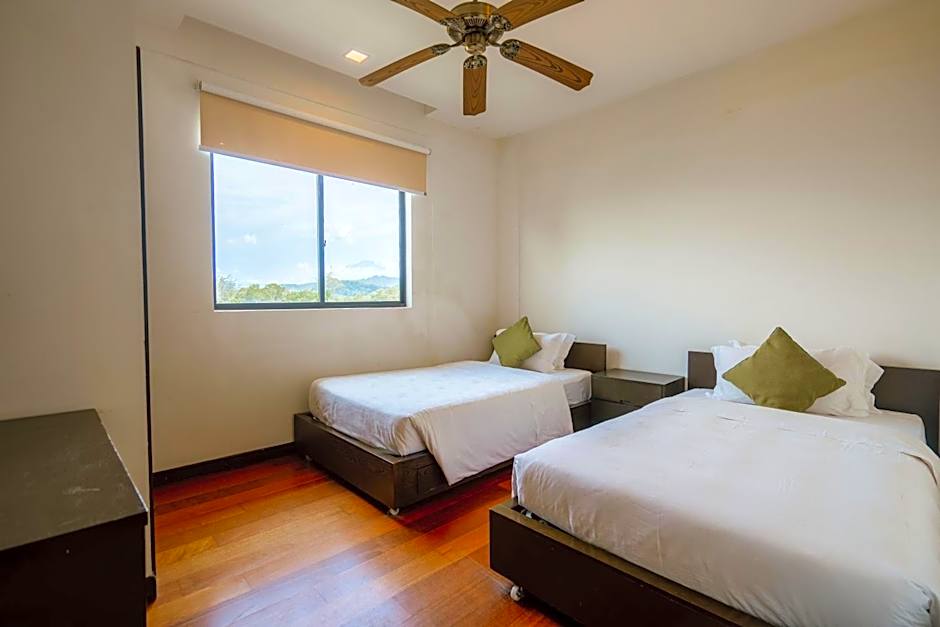 1410 sqft, 3 bedroom with one King sized bed and four twin sized bed, can accommodate 6 adults and 2 children (under age of 11years old) with maximum 2 paid extra bed added, coffee and tea making facilities and kitchen with basic cooking utensils provided. Individual Jacuzzi and a private lap pool are standard features in every villa. Seaview units have a view which is facing the sea with a walking distance of less than 2 minutes to the beach.