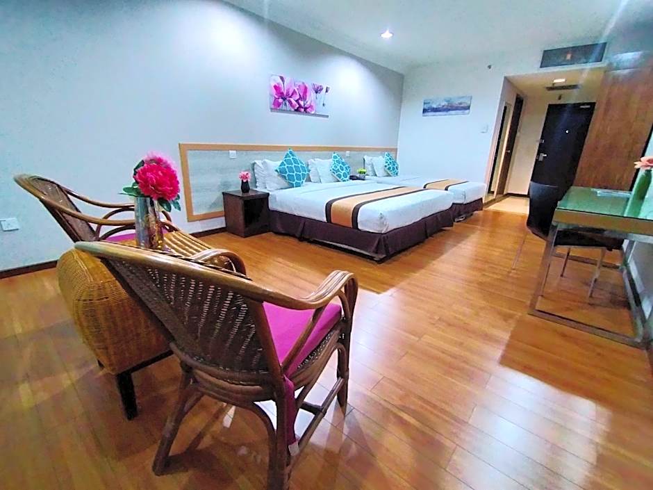 The rooms at TD Plaza Hotel include Superior King Room with a Double bed and a room size of 172 sqft accommodating 2 adults. The Deluxe Triple Room features 3 Twin beds with a room size of 205 sqft, accommodating 3 adults and 2 children. The Superior Family Room offers a Twin and a King size bed while accommodating 3 adults and 2 children in a 205 sqft room. All rooms are non-smoking.