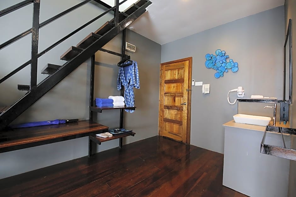 Too many stairs between facilities — not suitable for elderly guests. The beach was rocky and difficult to swim in. No water bottles (even glass) were provided in the room. Instead, we were given metal bottles and had to walk up and down several stairs to refill them from a shared station. Shampoo and soap were very weak. Only one toilet paper roll was provided for three guests, and the trash bin was very small. No iron was available in the room.