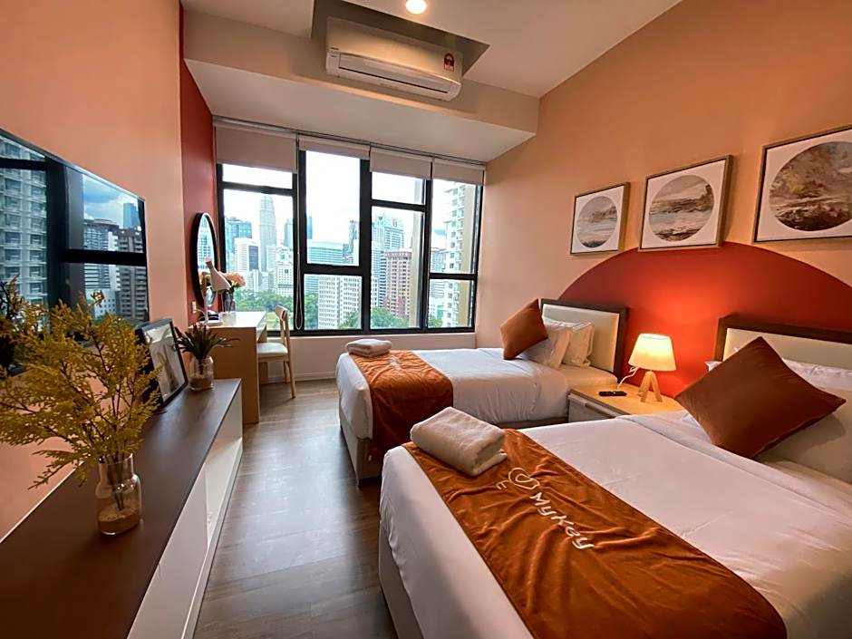 This was in a great location - I got a quick grab from the KL central station after the airport train to get here. Many sights are within walking distance. The KL tower and eco park is just outside and the petronas towers a half hour walk away. The view from the room is great and there are pocket gardens, a small gym and a pool area on the 37th floor with a great view. It can get reasonably busy with limited sitting areas. Theres a small mini mart on the ground floor. The studio was clean and ample enough space. The air con worked well (there’s a button on the wall) as did the wifi. Overall an affordable and great spot for a short stay in KL. Check in and out was easy. You can leave your bags for 5RM per bag.