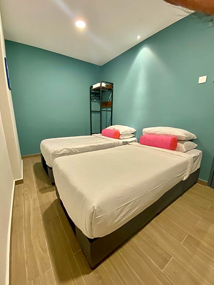 The staff was very friendly and accommodating. Great location - close to Bukit Bitang area, monorail station, night market and many more cool places. Not too far from KLCC. We stayed in the room with shared facilities (kitchen, TV, etc.), but it was comfortable and quiet. On the 6th floor there is a nice terrace with a coffee machine.
