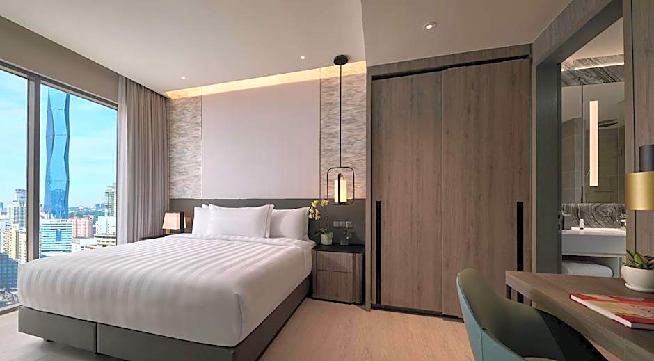 Cada quarto é um santuário, completo com minicozinhas, ar-condicionado e paredes com isolamento acústico convidativas que garantem uma noite de descanso tranquila. Precisa de ajuda? A recepção 24 horas está sempre pronta para tornar sua estadia ainda mais agradável. Portanto, seja planejando um retiro tranquilo ou uma emocionante aventura pela cidade, Pan Pacific Serviced Suites Kuala Lumpur é seu ingresso para experimentar a magia da Malásia!