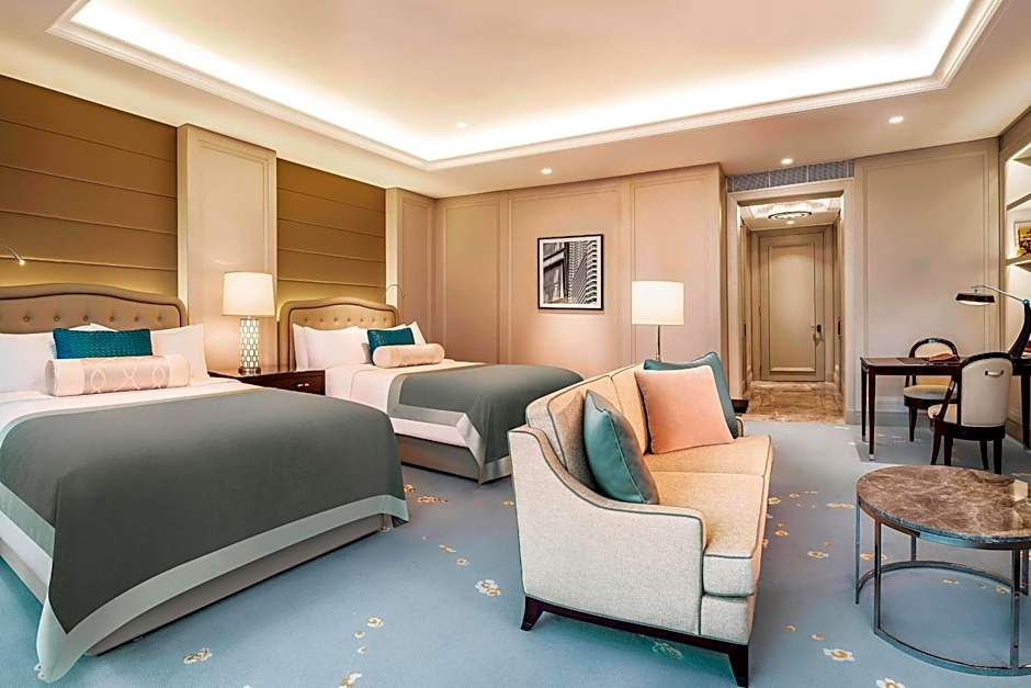 The St. Regis Kuala Lumpur offers a variety of rooms including Guest Rooms with City View, 1 King Bed Guestrooms with City View or Lake Gardens View, and suites like the Caroline Astor Suite and the John Jacob Astor Suite, both with Lake Gardens View. The rooms come with single or multiple bed options such as 1 King size bed, 2 Queen size beds, and 1 Queen size bed. Smoking is not allowed in any of the rooms at the hotel. Double rooms are available for up to 3 adults and 2 children, while suites can accommodate up to 3 adults and 2 children.