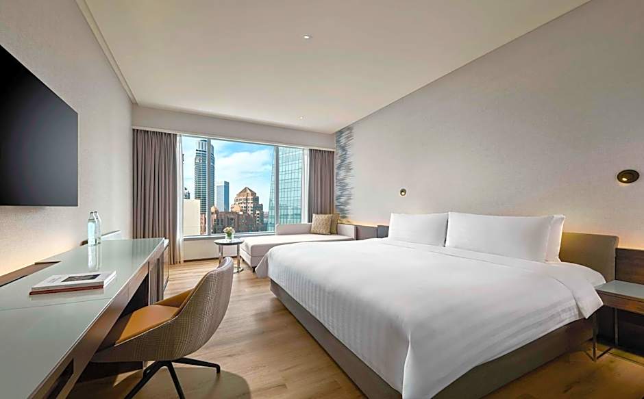 La ristorazione in loco è il sogno di ogni buongustaio: Gobo Chit Chat propone un invitante mix di piatti cinesi, italiani, coreani, di mare, sushi, locali, asiatici e internazionali in un ambiente moderno e adatto alle famiglie. SkyBar porta un’atmosfera elegante e moderna e piatti internazionali per un’eleganza senza sforzo con vista, mentre OnTheGo serve sapori coreani, locali e internazionali in un’atmosfera adatta alle famiglie. Bara On Six completa l’offerta con portate internazionali moderne, e il servizio in camera porta queste opzioni alle porte degli ospiti.