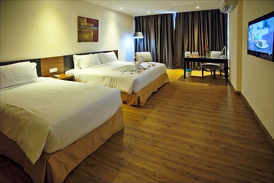 price, quality, clean, comes with breakfast, the politeness of staff, location near to mydin, banks, restaurants, pharmacies, 7 eleven, ample parking lots, a working tv, the equipped room facilities (iron,fridge,air-cond,amenities, bed, coffee tea n accessories, ) room is big and good flooring. Great improvement at the front desk.. breakfast main dish improved in taste but i think its time to change the recipe of spaghetti, soup noodle recipe. maintaining the menu is alright but the taste is somewhat not.