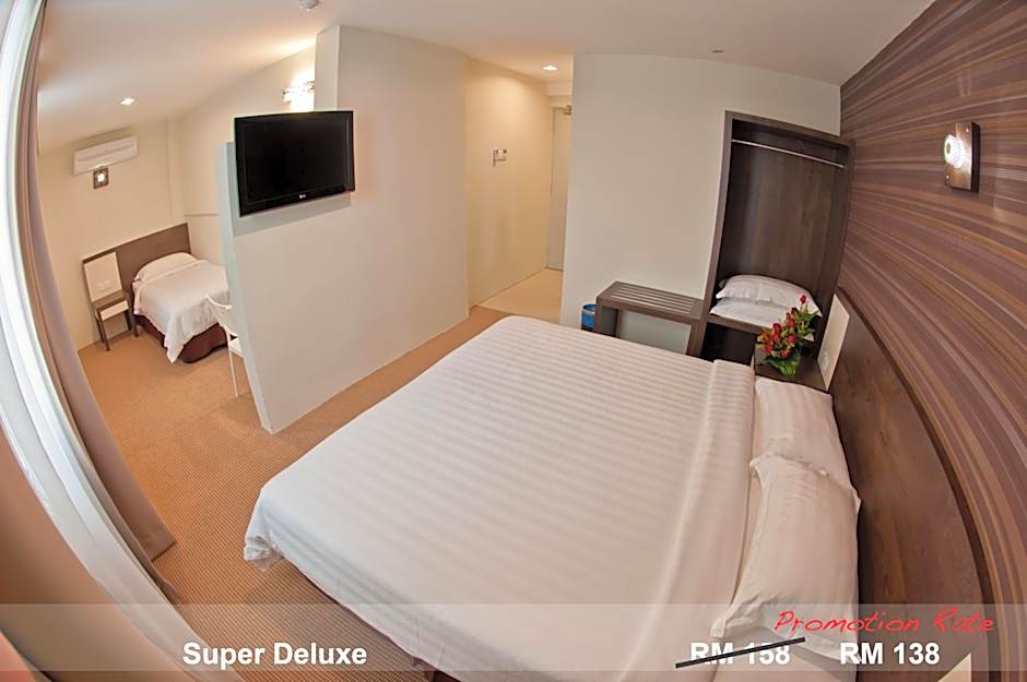 Facilities (minibar,tv with lots of channel), very good staff n simple breakfast that they offered. Strategic location near to Menara Teruntum and river cruise-walking distance.