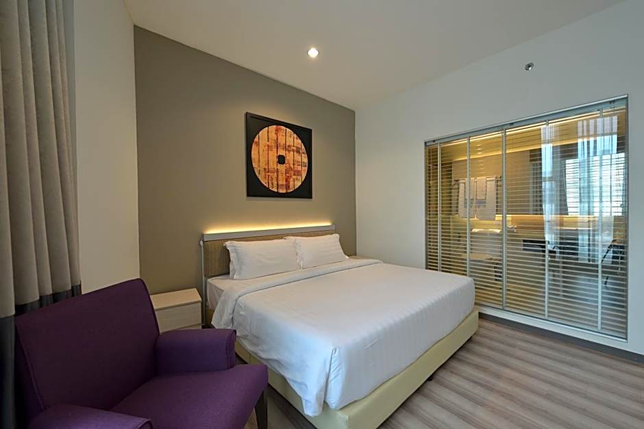 This larger air-conditioned deluxe king room opens up to city views. The room is fitted with a flat-screen satellite TV, mini-bar and a desk. The private bathroom includes shower facilities, a hairdryer and free toiletries. Room can accommodate only 1 extra bed.