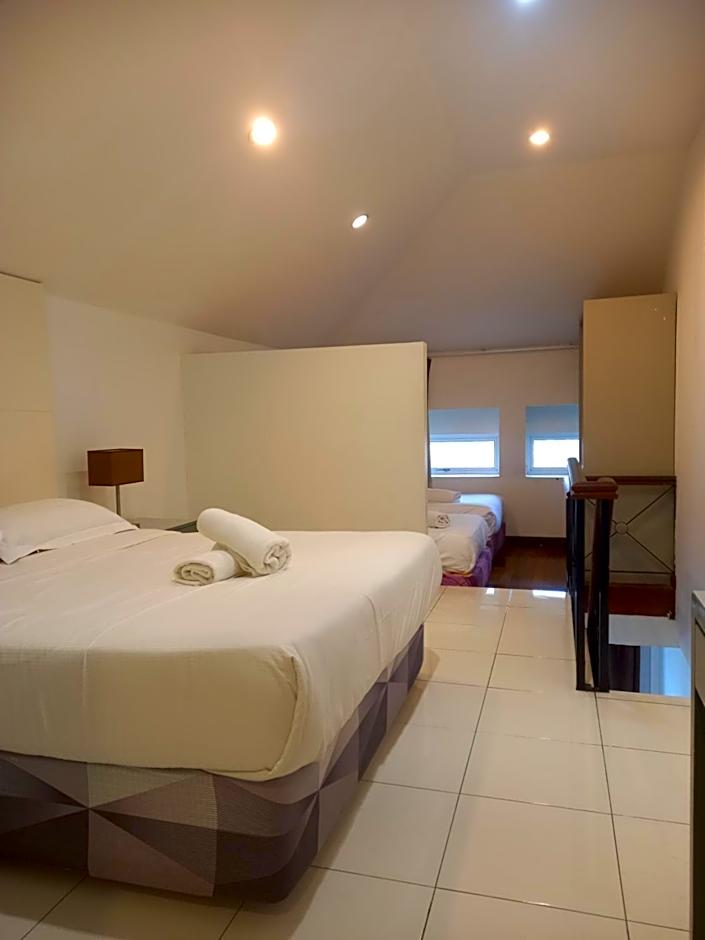 An air-conditioned apartment with 3 bedrooms for 7pax, a spacious living room. It also has a dining area and please note there is no kitchen. Located at 1st Floor