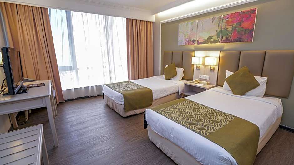 The Kingwood Hotel Kuching offers a variety of rooms including Deluxe Twin Rooms, Standard Twin Rooms, Super Deluxe Double Rooms, Standard Double Rooms, Deluxe Double Rooms, and Deluxe Rooms. All rooms are non-smoking and have a maximum occupancy of 2 adults and 1 child. Bed sizes range from twin beds to queen size beds and room sizes range from 226 sqft to 517 sqft.
