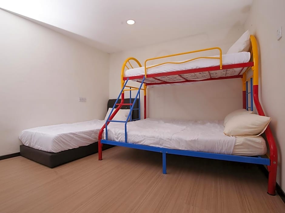 The family room includes a shared bathroom, well-fitted with a bath, a shower, a bidet and a hairdryer. The family room's kitchenette, which has kitchenware and a microwave, is available for cooking and storing food. The family room features air conditioning, heating and city views. The unit has 5 beds.