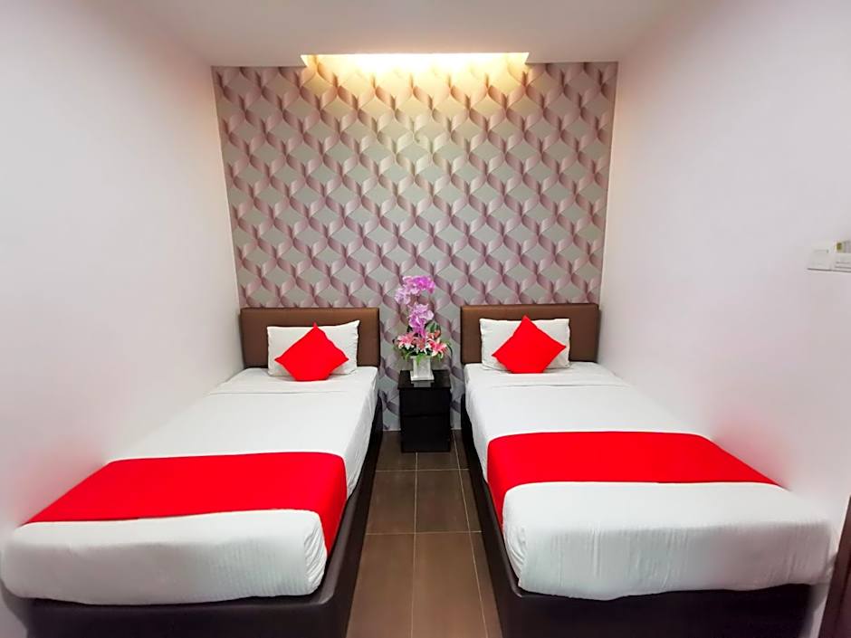 The Palazzo Hotel Kulai offers Deluxe Triple Rooms that are non-smoking and can accommodate 3 adults and 1 child. The room size is 258 sqft and features 1 Twin bed and 1 Queen size bed.