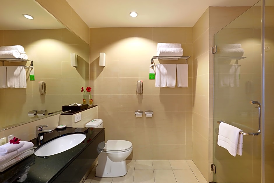 This air-conditioned deluxe twin room opens up to views of the city. It is fitted with a flat-screen cable TV, mini-bar and a desk. The private bathroom includes shower facilities, a hairdryer and free toiletries.