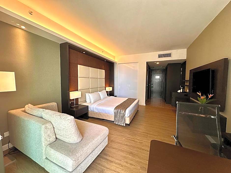 This air-conditioned room features a private balcony that opens up to views of the city. It is fitted with a flat-screen TV, sofa and a mini-bar. The private bathroom includes shower facilities and a hairdryer.