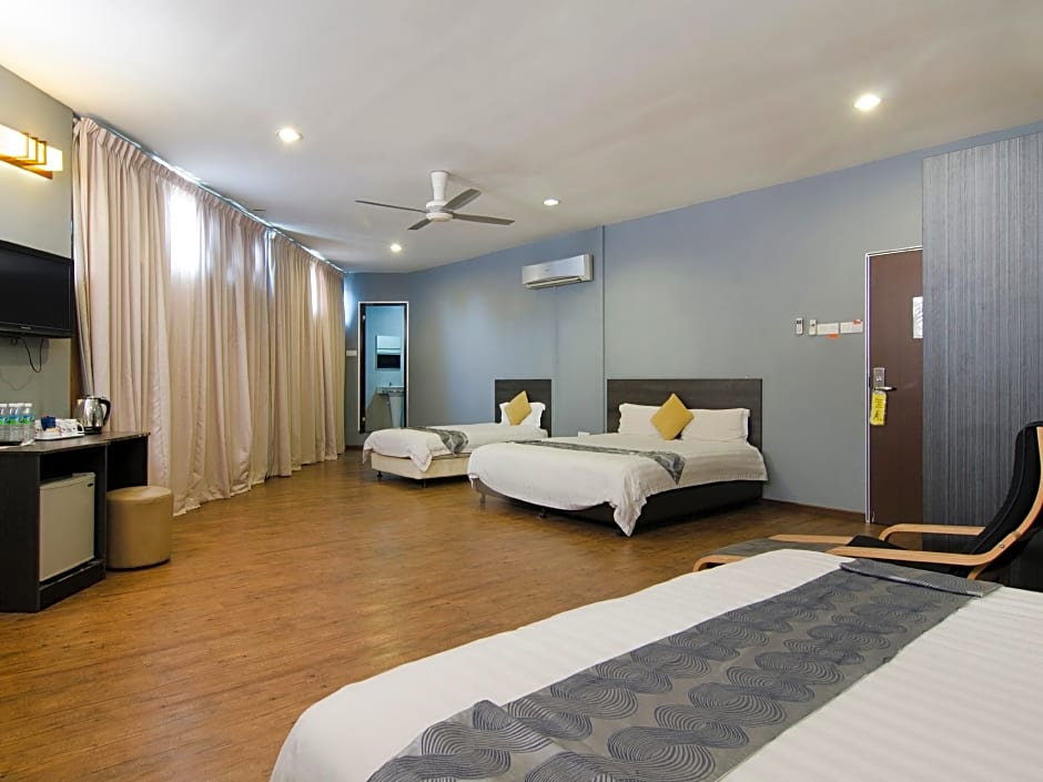 Room choices are varied, including Deluxe and Quadruple options, as well as Executive and Twin layouts, with a Triple Room offering a Garden View among others. Some configurations accommodate larger groups—up to 4 adults and 3 children—making it a flexible pick for families and friends. Additional variety includes Standard Shophouse and Deluxe variants with no window, balconies, or king beds to suit different preferences.
