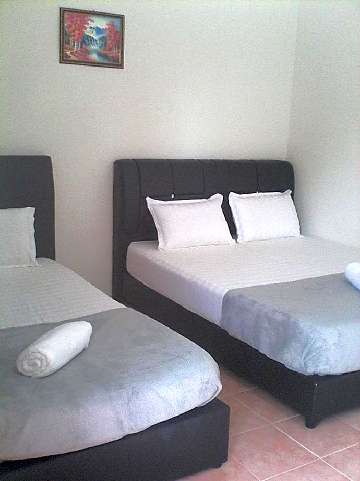 Absolutely loved our stay here! Couldn’t say a bad word. only a 5 minute walk along a path to the main road/beach. Shop at the end of the road. Good Wi-Fi, AC, fridge and kettle in the room. Perfect. Thank you so much. Such amazing value for money would recommend! Also we’re able to rent a scooter from here for 40 ringgit a day:)