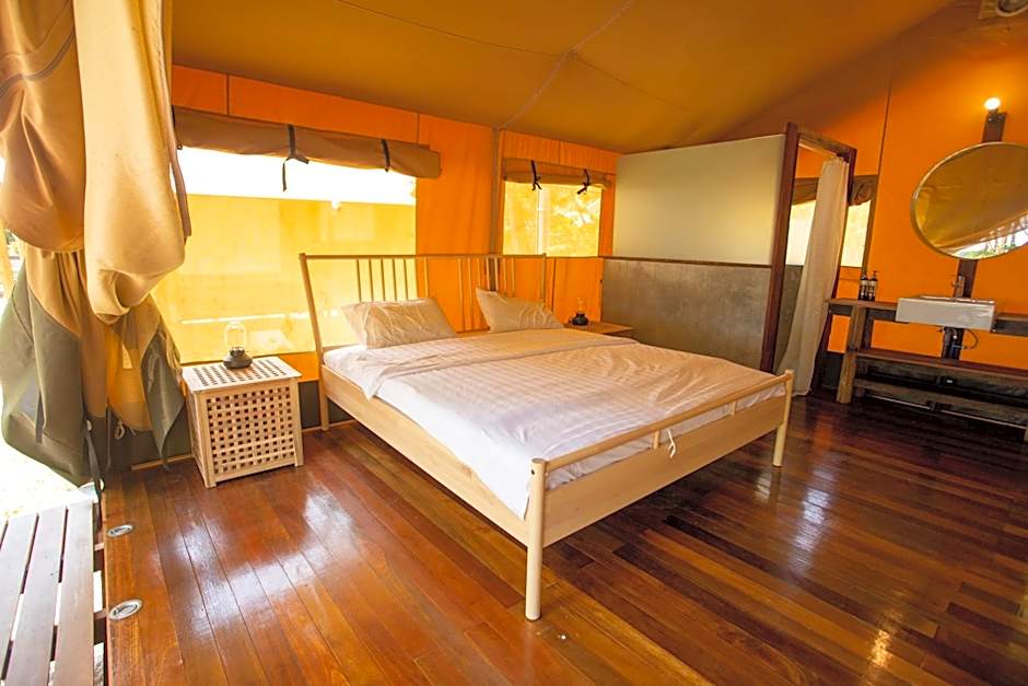 The tent offers air conditioning, a mini-bar, a terrace with sea views as well as a private bathroom boasting a shower.