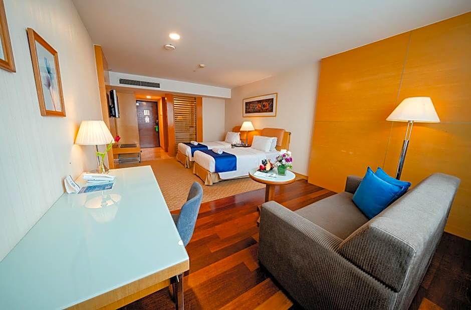 Featuring free toiletries, this twin room includes a private bathroom with a shower, a hairdryer and slippers. The spacious air-conditioned twin room features a flat-screen TV with satellite channels, a mini-bar, a tea and coffee maker, a seating area as well as city views. The unit has 2 beds.