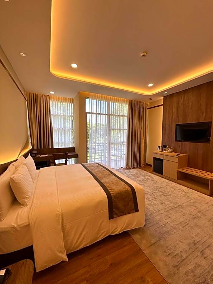 Room features a private terrace with views of the Putrajaya hillscapes.