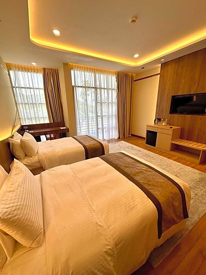 The hotel offers various types of rooms including Deluxe Hillview Twin Room, Family Fun Package at Deluxe Garden View Room, Deluxe Garden View - Perfect Celebration, Deluxe Garden View King Room, Deluxe Hill View - Perfect Celebration, Deluxe Hill View King Room, Deluxe Park View Twin Room, Deluxe Park View King Room, Deluxe Garden View Twin Room, and Deluxe Family Room. The occupancy for most rooms is 2 adults and 1 child. Smoking is not allowed in any of the rooms. The bed sizes vary but most rooms have a combination of a king-size bed and twin beds. The room size is 431 sqft for some rooms.